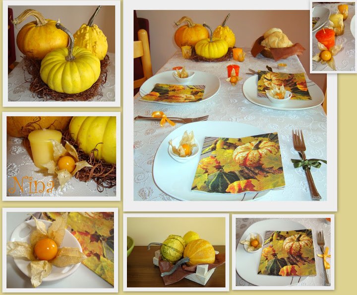 ! Показала си три страхотни маси! Сивата е еталон за Новогодишна маса! И аз си мислех за сребро за Нова година. Много официална и нежна маса! Розичките са очарователни! Зелената не знам защо мислиш, че не се е получила, според мен е страшно оригинална! Харесват ми кутиите, шишенцето с двата вида зелен пясък и камъчетата по масата, както и зеления висок свещник. Поставила си салфетките в купичките много красиво! Кафявата ми действа много релаксиращо! Много са сладки слончетата, дърената купа в средата с нежните жълти рози изглежда много романтично, много харесвам как си вързала салфетките, а в стъклените ти купи съм влюбена!