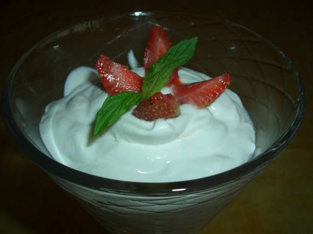 Зписвам се в новата темичка с манджа с тиквички, гъби и пилешко. Десерт - желирано кисело мляко, мента /ментов сироп за коктейли, разреден с вода/ и ягоди, от предишни дни.