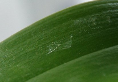 Търси в закътани местенца - ако някъде има опряни едно в друго листа или листо и въздушен корен, в щипката, с която е прикрепен цветоноса, отзад и между листата на цветовете(пак където се опират).