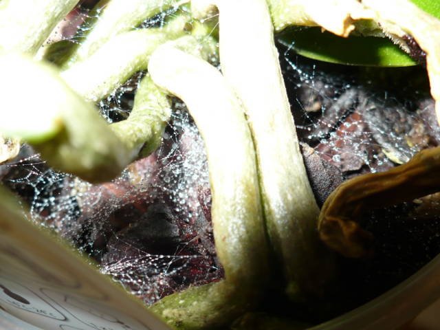 Що се касае до мухлите, паяжините и влакнестите въшки по фалчетат от Кауфланд, мога да споделя че всеки път когато имам ново цвете от там задължително пръскам с Клинес срещи вредители ( и растението и субстрата ) и след това с Лактофол за гниене, мана и мухъл. Защо го правя ли - ами погледнете си внимателни пръчките на които са подпрени цветоносите. Всеки път са доста смухливени, понякога само в основата понякога целите - догоре. В последно време явно са и полето междинно орхиеите защото найлоните са мокри отдолу, вероятно от конденза и топлинта бързо мухлясват и растенията и подпорките. Минитата пък направо плуваха във вода в кашпите си тогава, така че него го третирах по внимателно,оставих го да просъхне доста добре - не съм го поливала откакто го имам сигурно вече 3-4 седмици - изглежда перфектно и без бели петна, отвориха се всички пъпки без две които паднаха.  Иначе мен влакнестите въшки не ме плашат. Тя и енциклията ми октопуси се оказа с такива а беше купена от Мимозата- сравнително луксозен цветарски магазин. Паячета също често се завъждат, но през лятото и ако има лоша вентилация това се случва често на което и да е растение. ..Така че съветът ми е - просто да предприемате веднага профилактика и при поливане да оглеждате внимателно и примерно пръскате профилактично. Аз дори пръскам кашпите от вътрешната страна....