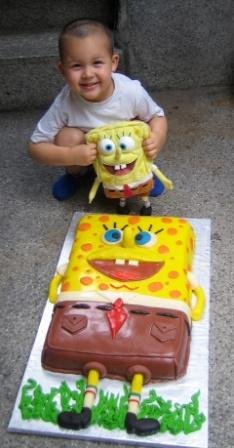 Първо моят син имаше рожден ден на 22-ри и му направих торта за детската градинка.Има една играчка Спонджо Боб и това си пожела.Показвам ви снимка на рожденика с тортата.И тортата отделно(джобовете на гъбката се поизкривиха но впоследствие ги поцентрирах) Joy