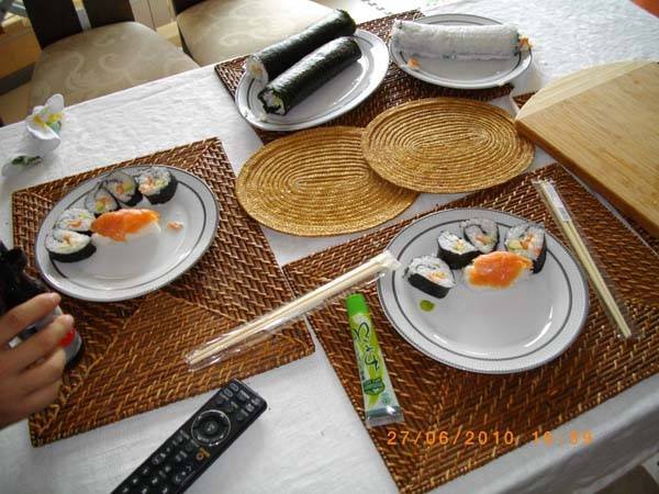 Много гадно беше времето в неделя и ходихме в Мола. Нищо особено не правихме, но напазарувах продукти за суши и ето резултата. А снимки на Дея ще пусна в албумчето Simple Smile как яде суши с баща си Simple Smile