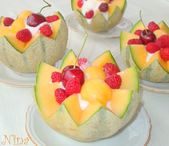 Днес една салатка от и в градината и една мелба в пъпеш: