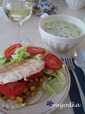 От мен джоб питки с кайма и зеленчуци и таратор: