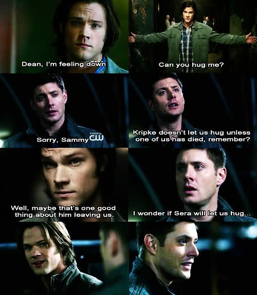 PPS. Прегръдките на Сам и Дийн са сред най-любимите ми моменти от сериала, както, предполагам, на всички фенове. Става ми едно такова топло на душата. А иначе, не мога да разбера реакцията на същите тези фенове/фенки, когато се прегръщат Джаред и Дженсън – 'Това утре няма да го има в никой уебсайт' (не си спомням точно ироничното изказване на Дженсън, но смисълът беше този). Смотани Хамериканци, с техният ужас от нарушаване на личното пространство – имат право, но прекаляват.
