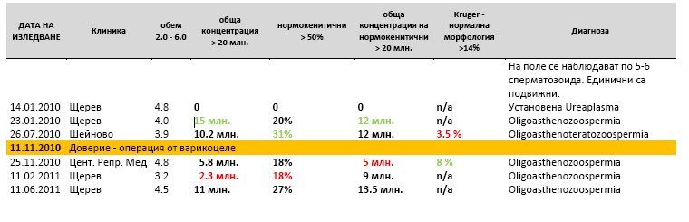 Здравейте момичета! Днес правихме спермограма в клиника Щерев и резултатите са следните