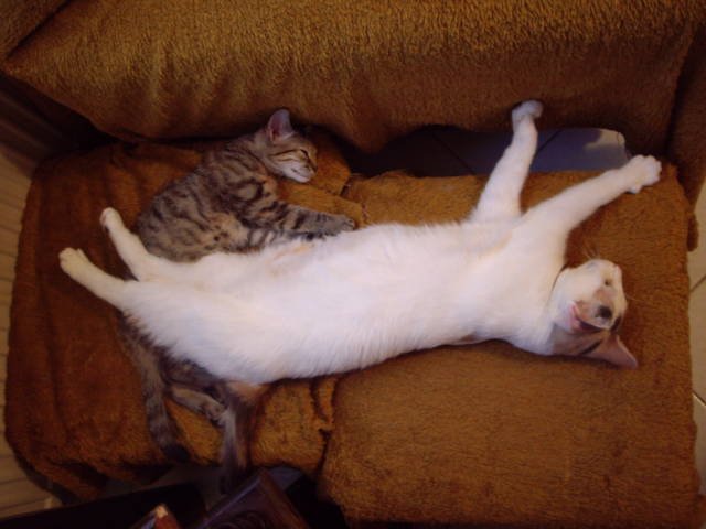 Токачке, не е истина това клипче, кой ми е откраднал котките беееееееееееее Joy А те всъщност нашите го правят това, само че през нощта, преди мис е катереха на моята глава, сега какво ги е прихванало, само на мъжО на възглавницата, и се увиват около главата му и го ближат Crazy Joy