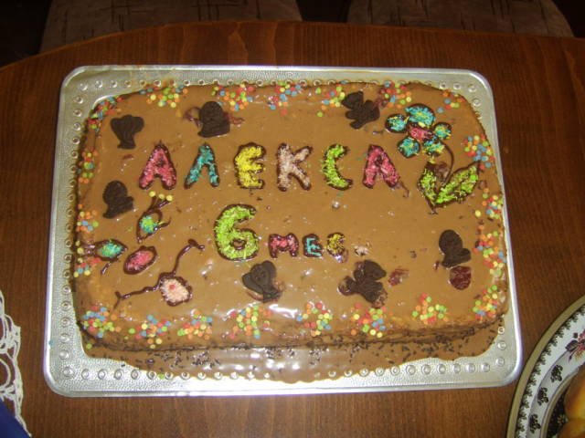 Честита половин годинка на Алекса. Да е много здрава и все така прекрасна! Тортата е разкошна. аз гледам сега рецепти, че нали се зарекох Ясен да има торта най-накрая и като ги гледам май ще взема готова Mr. Green
