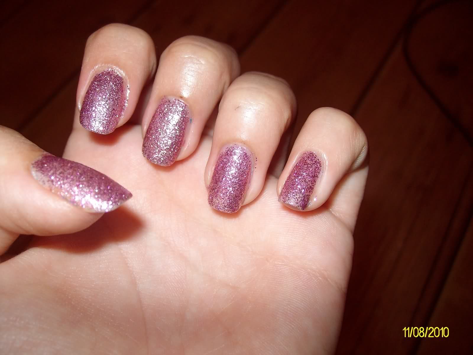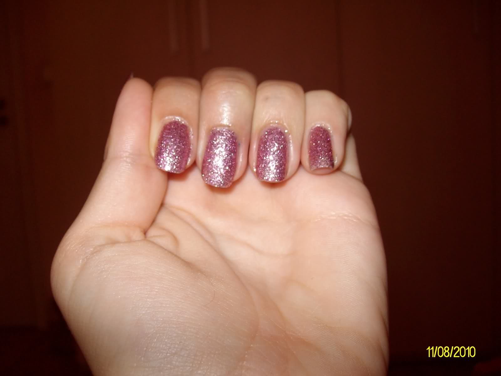 Въпреки тревогите ми, че розов лак с едри брокатени частици ще стои циганско върху цялата ръка, в момента съм тотално влюбена в новите си нокти Crazy Оказа се, че този лак ще ми е ``за спешни случаи, когато трябва да се лакирам бързо, но да блесна сред тълпата`` Mr. Green Нанесе се сам, без да цапа и изсъхна мигновено Shocked Като знам колко трудно се маха брокат от ноктите сигурно и ще е издръжлив, за всеки случай ще мацна и един топ отгоре. Ето го Crazy