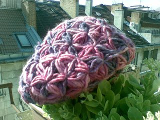 Е т'ва шапо и аз искам да го спретна. Имам един меланжиран в розе или пепел от роза  Кашмир - дали да не прежаля от него за едно такова шапо или пък да си взема нещо небоцкащо ? Thinking