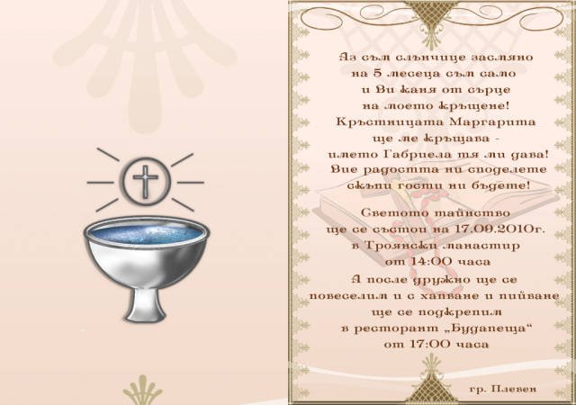 Благодаря на всички за честитките -нямам време много да ви следя но мисля за вас.Сятагне кръщенето на 17 септември и съм готова с поканите -вече са напечатани - после ще ви пусна снимки да ги видите - мое производство са  Mr. Green