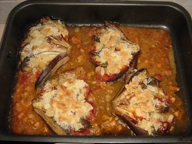 При нас ветрилото от патладжан на Пеп-4о, но тъй като нямах кашкавал ги поръсих с притрито брашно с масло и филирани бадеми - стана страхотия и пукана бамя, овкусена със сол оцет и олио