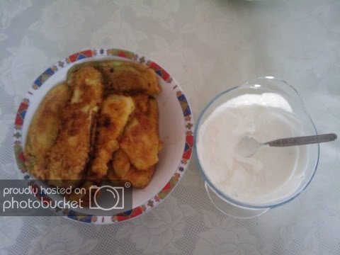 Отдавна само чета, но днес реших да се включа с моите тиквички по гръцки Grinning Снимката е малко кофти, но е правена с мобилния телефон. Отдясно е чесновият сос, няма такава вкусотия!