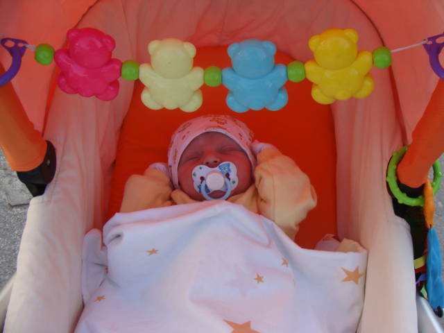 Днес бяхме на първата си разходка,спа си човека и си кротува,после откарахме в двора на сестра ми 3 часа ooooh!