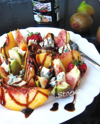 Днес не съм готвила (утре е ден), само следобедно едни плодове със сирене и балсамова редукция