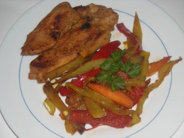 За вечеря у дома съм приготвила пилешко филе  със зеленчуци и ПРЕВЪЗХОДНИТЕ секретарски мъфини на labrex с Нутела.