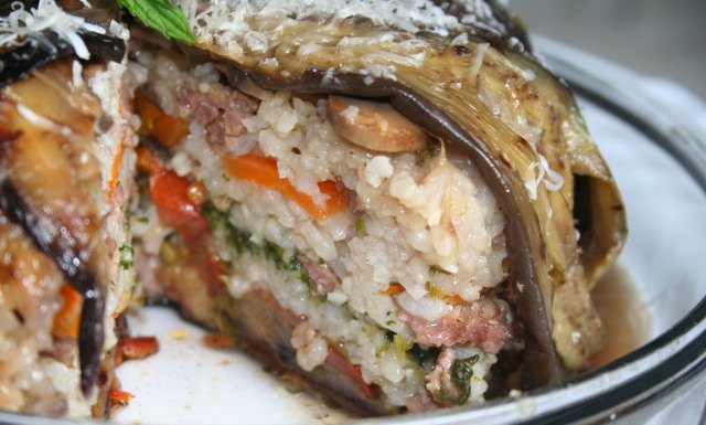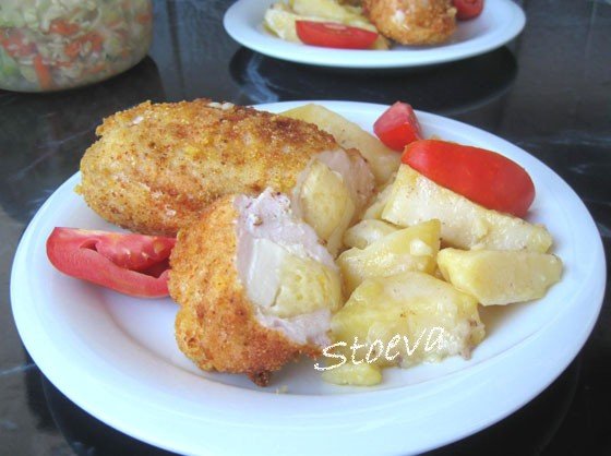 Доматите са пълнени с Пармеджано, галета и подправки. Наистина са много добри.