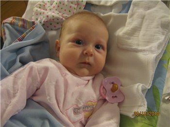 Дани е прекрасна. Ама много бързо стават човечета тези бебешори, каква беше на предишните снимки...малка, малка:)