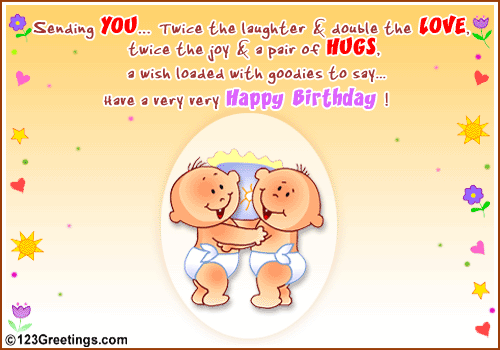Двойна да е радостта ви,и много да сте здрави.Все така засмени и с червени бузки мама да ги схруска!!!