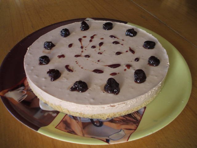 Показвам един чийзкейк, за първи път правя, водих се основно от рецептата на Аелис, но има и мои промени. Вместо с крема сирене го направих с извара и сладко от череши. LaughingРазрез по-късно ще има. Надявам се да е вкусен  chef