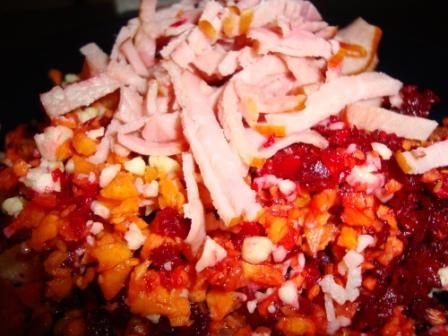 Интересна идея. Много обичам салати с цвекло, но никога не съм се сещала да добавям месце и кашкавал. Мерси за идейката