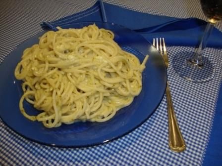 От мен спагети с песто, сметана и сирена и една баклава със страшно много орехи  Mr. Green