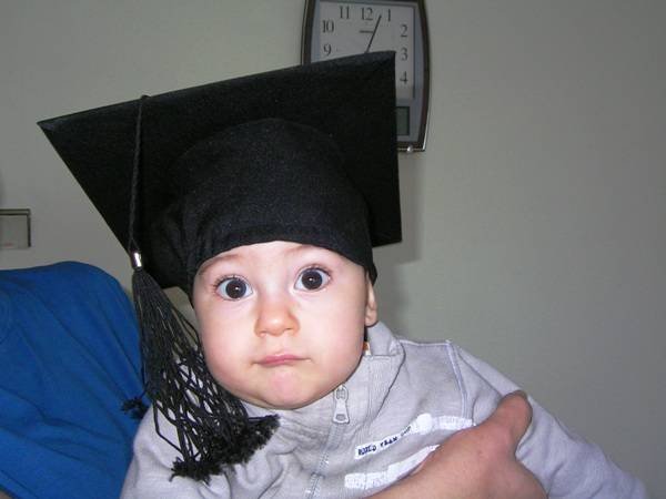 Веси, ама тя университетската шапка съвсем му е по мярка!