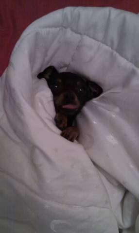 Много се радвам на такива снимки, където кучовци лежат завити, гушнати и т.н. При нас при всяко появяване на човек Джескин излита от къщичката и започва да скача. Никога не съм я виждала легнала, нито седнала, все стои изправена, скача или тича нанякъде.