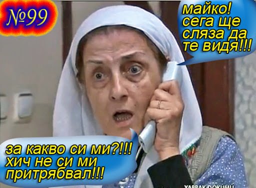 Здравейте,мацките)  bouquetАбе само аз ли се издразних на момента,когато дойде Али Раза на строежа и Шефкет се изцепи-"Майсторе,направи един чай"...сякаш него кой знай каква го е скъсала,доколкото не съм кьорав на тоя строеж бай Шефкет само си клати мандрахурниците и дреме като е.ана мисирка,че да кара човека и чайове да му носи.Егати и семейството аз, на всички им дай да командват,тая дъртата и тя се изживява като кралска особа,много грозно от нейна страна едвам погребали Джем и айде му обсеби къщата като някой паразит,че и момичетата взе да действа,сякаш е някакъв тартор там. ConfusedСедеф си продължава да си ме дразни,прецака брака на Шефкет с Ферхито,като му се слагаше постоянно,сега си би шута.Заради нея Ферхунде абортира и тръгна с който и падне да забрави любовта си към Шефкет,който не знам защо по какви сценаристки изгъзици още обича.А той е толкова смотан,че ще се опита и да се възползва от това май. #2gunfireЛейля ми е по-симпатична от Недjля в интерес на истината,по-нежна,по-женствена,търсеща закрила,и аз съм си падал по такива жени,с тях се чувстваш силен.А щях да забравя,Фикрет много ме изкефи при Слави,въпреки че плешивия учиндолски кирпич пак не беше в час,може да се мъчи да копира Джей Лено,но не може и на косъма да му се намаже,и аз харесвам Ферхунде,ама тая жена насреща ти също е хубава,ръба дори един комплимент не й каза,Феникс Светкавицата..това можа да му измисли приматският мозък на Гонзо Виелицата!Че и претенции към тия там претендентите ще има,бегай бе!
