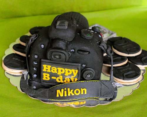 Пускам си една торта, която много се чудех дали да пусна тук, тъй като не стана това което аз исках и си представях, от цялата композиция смело и нескромно мога да кажа, че бисквитите капачки на обектив са ми повече от любими, едно че сама съм си ги измислила като модел и второ ми стоят много сладко, а фотоапарати кой ли не е правил.