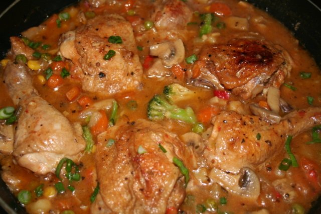пиле със зеленчуци на тиган                                             и                             предколедни мъфини с крокант