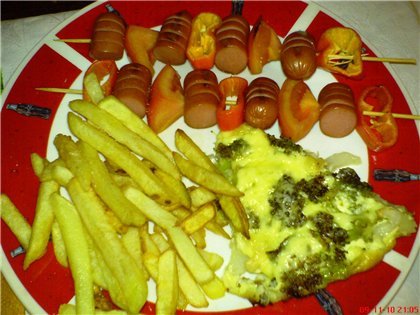 От мене: шишчета с кренвирши и пържени картофи