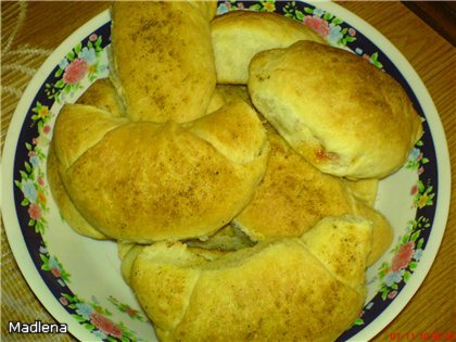 кифлички с кисели краставички, салам и доматено пюре
