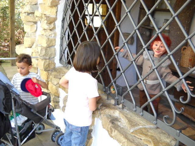Да взема да пусна и няколко снимки, че само едни и същи неща пиша напоследък. Миналата седмица бяхме в един замък на близо до нас. Имаше приказна Градина на приказките. В малки къщички има сцени от различни приказки, куклите се движеха или децата им казваха определени неща и те отговоряха. Напр. :"Рапунцел, спусни плитката си" и от кулата се спускаше плитката. Децата се забавляваха много целия ден, возихме се на лодки, люлки и влакчета. Изобщо един прекрасен ден. Simple Smile