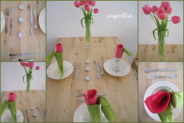 От мен днес една празнична маса ( и аз си имам лалета Simple Smile).И тъй като днес имам и повод (17 години откакто официално стъпих в къщата на половинката )   съм ви сложила и една виртуална почерпка в колажа.