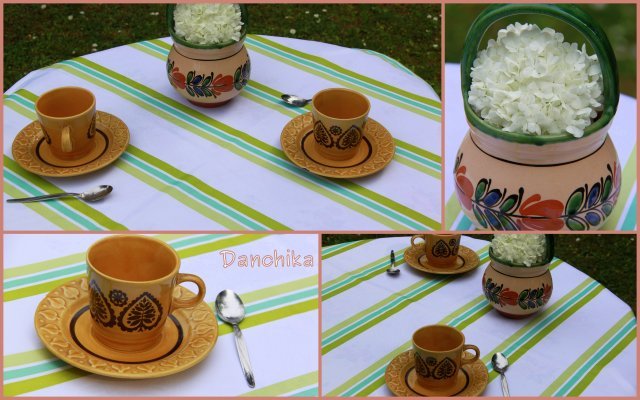 Въпреки това, Данчика,  си спретнала две невероятни градински маси. Особено синята е върхът, колкото пъти вляза толкова пъти се спирам на нея. Направих си труда да ти преброя сервизите (ти каза, че имаш само два броя)-само на последните няколко страници от темата преброих четири. Ще проверя и Тупарова за бройката, че нещо ме съмнява и тя да има само два сервиза.
