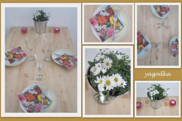Аз все гледам и гледам и много се радвам, че всеки път като вляза има по някоя нова маса. Имаме настроение за аранжировки въпреки, както разбирам, лошото време в някой райони на Земята. В Североизточна България (т.е. при мен) днес е супер, но май нямало да се задържи за дълго.