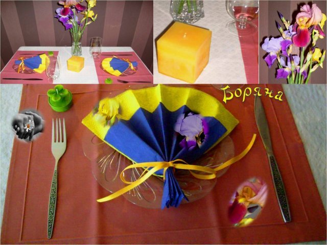 Боряна, и ти с много цветна маса, но чакам с нетърпение и бялата! Wink Много ми харесват салфетките, които си сгънала!