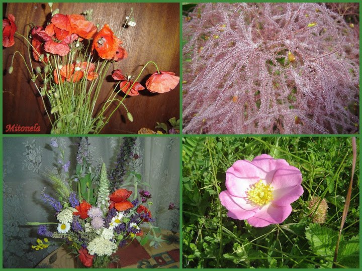 Аз напоследък нещо затънах в работа и все не успявам да си подредя маса, в събота ходихме за гъби, ( не че намерихме де, само 4-5), но си набрах толкова много цветя, които за съжаление останаха без маси.Може малко да поспамя, но не мога да не ги споделя с вас, макар и само така: