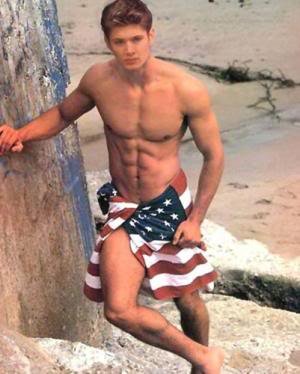 Може да не го развяват, а да се омотаят (на голо) с него. Ако не се лъжа Дженсън имаше подобна фотка, но няма да мога да я намеря сега.