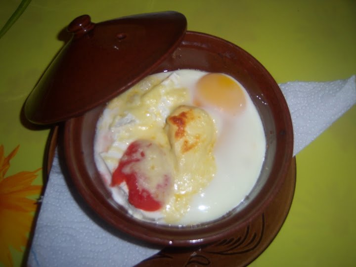 Аз продължавам  с леките храни. Снощната ни вечеря - сирена в гювече