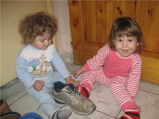 Благодаря за хубавите думи относно децата, те са велик тандем но много се и карат днес Ники блъсна Мади от леглото и си удари главичката  Cry