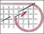 Под "елхичка" разбирам това, което отбелязах в червено, в синьо са чертичките. Червеното го ших надолу и след това се върнах нагоре и така наистина се хаби два пъти повече конец (не ми се смейте за гръбчето  Embarassed)