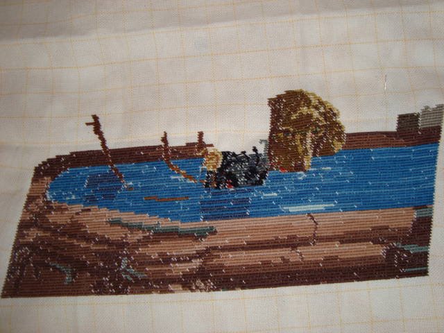 Предполагам, че е гобленов бод- така както трябва да се шие и  от двете страни да е наклонен. Тогава се изразходва повече конец, отколкото както шият някои- като полукръстче ,т.е отзад да е на чертички.