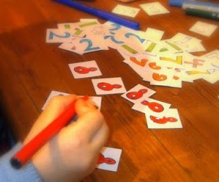 Ето какво направих за сина ми, за да го запозная с цифрите по забавен и неангажиращ начин: разпечатах цифрите на малки картончета (от всяка цифра по няколко копия) и ги сложих в кутийка. Вечерта двамата се занимавахме около половин час, през който той беше много ентусиазиран. Карах го да ми търси единиците, двойките и т.н. и беше много щастлив, когато изравяше от купчинката търсената цифра. Много му хареса занимавката. Една от следващите стъпки ще е да направим връзката м/у отделните символи и броя на който той съответства. Например единицата е равна на 1 калинка, двойката на 2 цветенца и т.н. Вероятно ще направя някакви шаблончета на калинки, цветчета, коли и т.н.