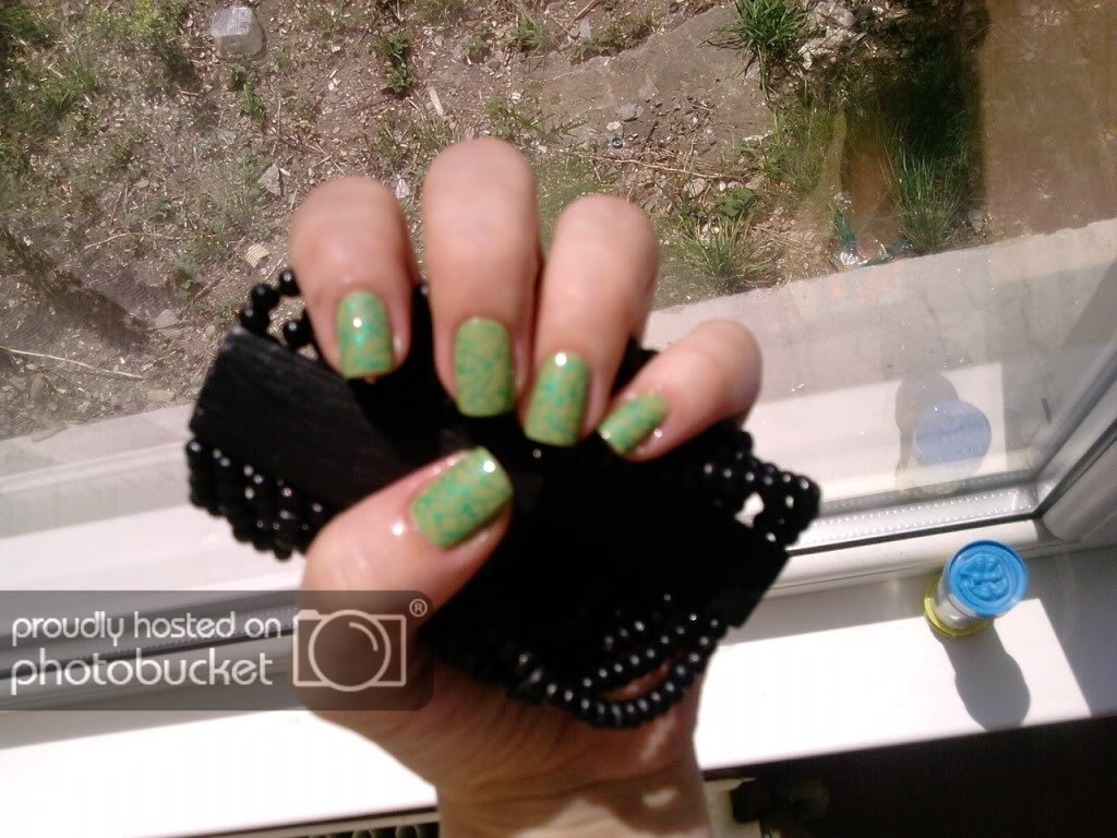 Да повдигна малко темата. Основният лак е М105 от летните Габрини-та. Супер покривен, предполагам че ще става за печати, но още на съм го тествала. Печата е с Флормар супершайн 50, а шаблона е ВМ 208. Съжалявам за качеството на снимките, но са с телефон защото апарата не е в мен.