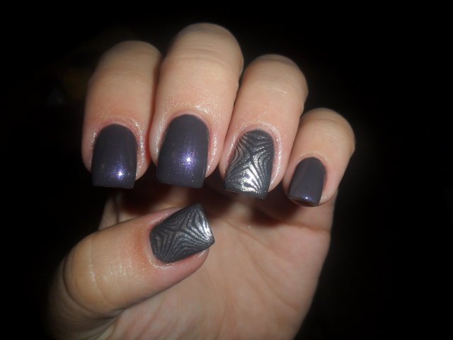 Снощи за първи път реших, че желая да се "напечатя". Използвах Конад М57; за основен лак - Essence SurferBabe Pointbreaker; лакът, с който направих самите печати, е Gosh Black Passion; след това матирах отгоре с матиращия топ на Rimmel. Grinning