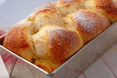 Обикновено пека в такива форми за кекс от бяла ламарина изпича се козунака ( ако не прекаля много с плънката  Blush)