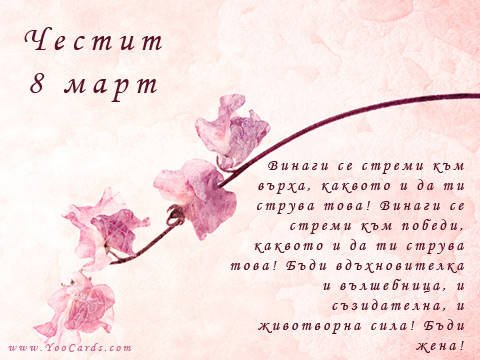 Честит 8 март, милички! Пожелавам ви от все сърце да сте много щастливи, обичани и здрави!  bouquet  bouquet  bouquet