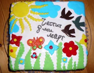 Привет!!! Малко Ви поизпуснах, но усилено се запознавах с правенето на фондан, покриване не торти и т.н.  Mr. Green и ето го резултата, с който Ви пожелавам ЧЕСТИТ ПРАЗНИК!!!